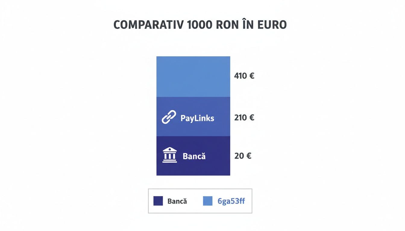 | PayLinks | 4,975 RON / EUR (Curs BNR) | ~201,00 EUR | Folosește cursul oficial BNR, fără comisioane valutare ascunse. |
